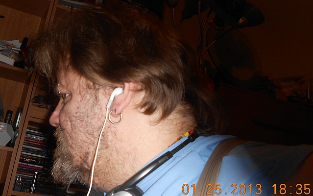 Photograph of me using the earphones as intended.