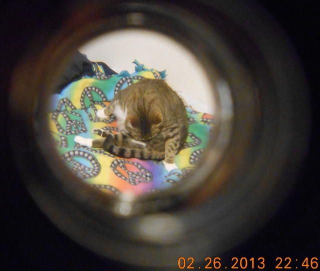 In the control photograph, the peace sign directly in front of Nikki's tail measures 15mm on my monitor; the Zoomies™ photograph shows the same peace sign measures 36mm on the same monitor.