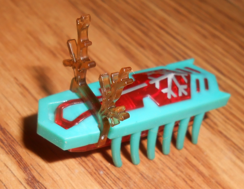 The Hexbug Nano is a unique "robotic" insect (or 'bug' if you prefer) that zips around on hard floors in a random manner; it has a vibrating device inside and twelve "legs" made from a soft rubber compound that propel it aross the floor. When it hits something, it automatically turns around, and if it ends up on its side or on its back, it's self-righting so you don't have to go pick it up and set it back on its legs every time it flips.