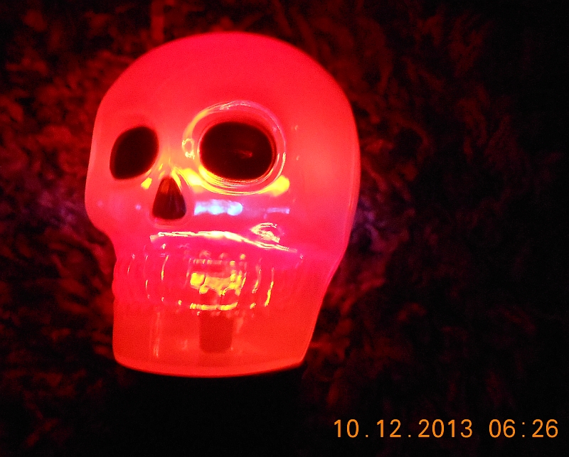 Because this is a seasonal novelty item and not a flashlight, the punishments I bestow upon flashlights will not be bestowed upon the Skull Spinning Light. So this section of the web page will be significantly more bare than this section of the web page on a page about a flashlight who's sole purpose in life is to be a flashlight.