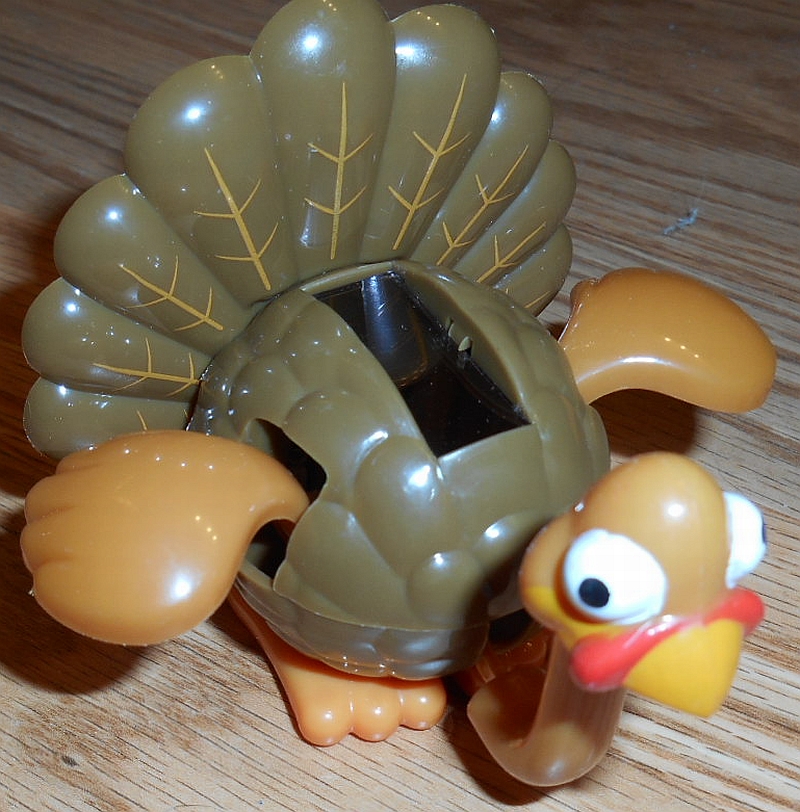 The Solar Dancing Turkey is a plastic turkey that has wings & neck that move when it is exposed to bright light.