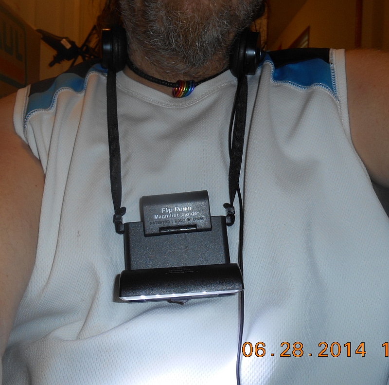 Picture of the Beam N ReadŽ 6-LED Handsfree Deluxe Reading Light slung arond my neck like it was intended to be used.