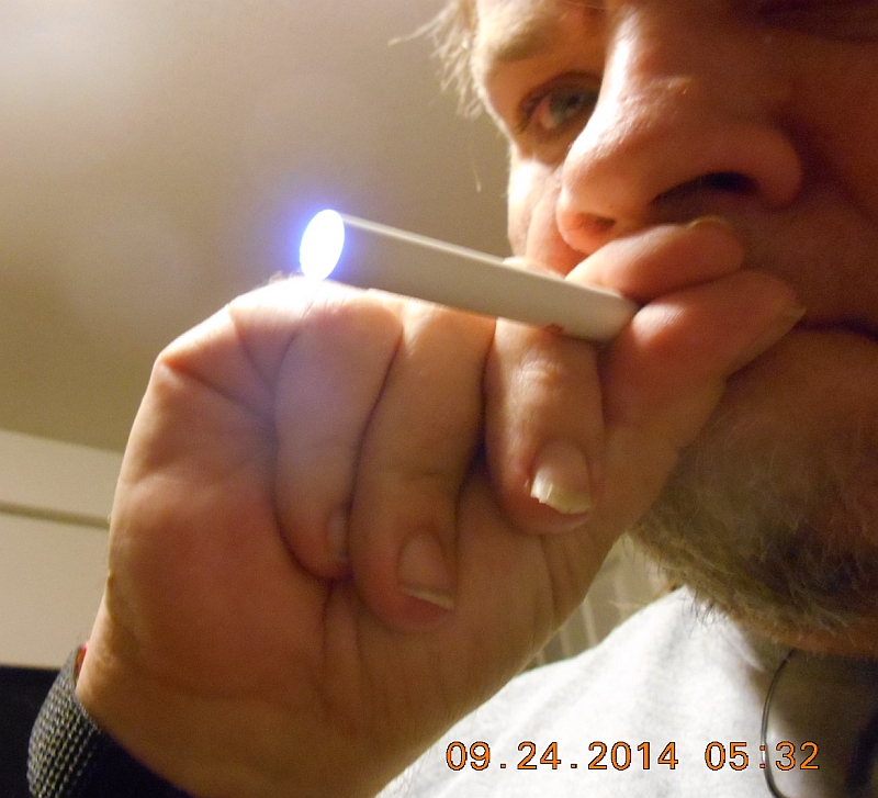Photograph showing me taking a toke off the Fin brand Rechargeable Electronic "Siggeret".