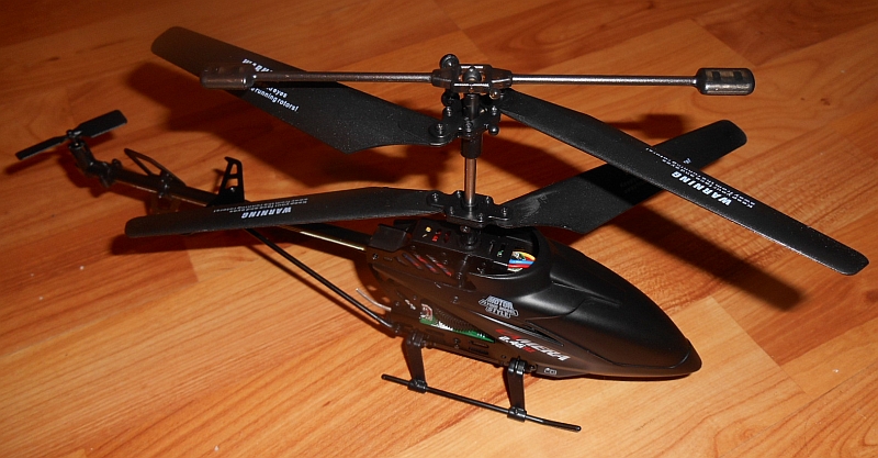 This isn't a flashlight, household lamp, Christmas light set, or other thing that glows, but it *DOES* have a bunch of flashing LEDs on the sides of its fuselage and along the length of its tail boom, so what the hey.