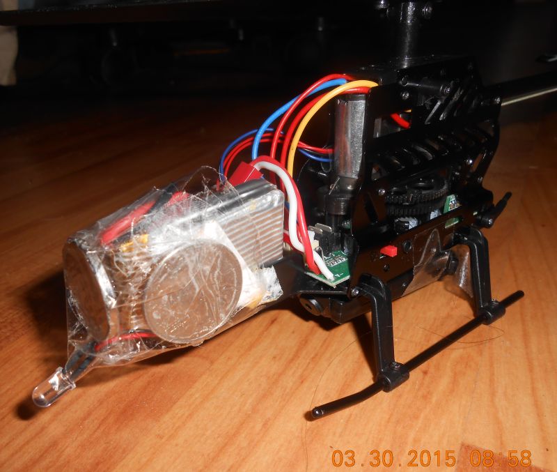 The gay little plastic & metal heli can now no longer spin its tail rotor, so it can no longer be flown. Therefore, the dreadful, "