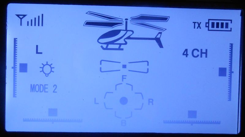 4: Push up on the left stick until it can go no farther and then pull it back toward you. This "arms" the heli. Push the left stick up again. The helicopter should now lift off the ground. Congratulations, you're now a pilot!!!
