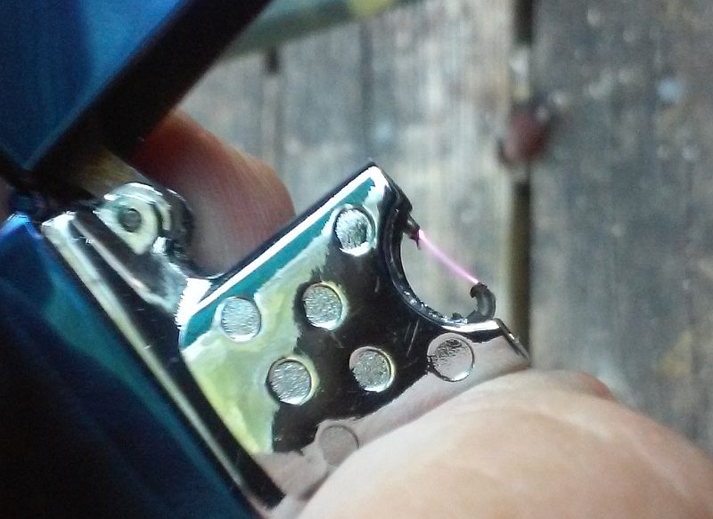 Instead of fuel like butane or Ronsonol lighter fluid, this lighter uses an electric arc as its heat source!